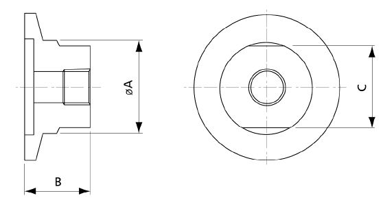 KF Size – 16, Thread Size – 1/8″PT, Material – 304 Stainless Steel, A – 19.05, B – 25, C – 17
